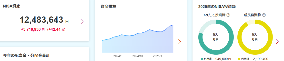 来年の成長枠240万分をSCHD(今のところ年初に一括で考えてる)に入れれば、特定枠も合わせて約500万円。